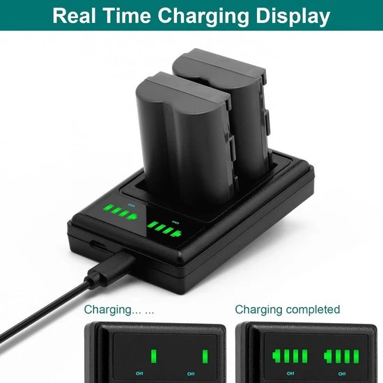 This set not only provides extra power for your camera, but also the convenience of an LCD dual USB charger that allows you to charge two batteries simultaneously. The built-in high-performance safety circuit protects against overcharging, overheating, and short circuits, so you can charge your batteries with peace of mind.