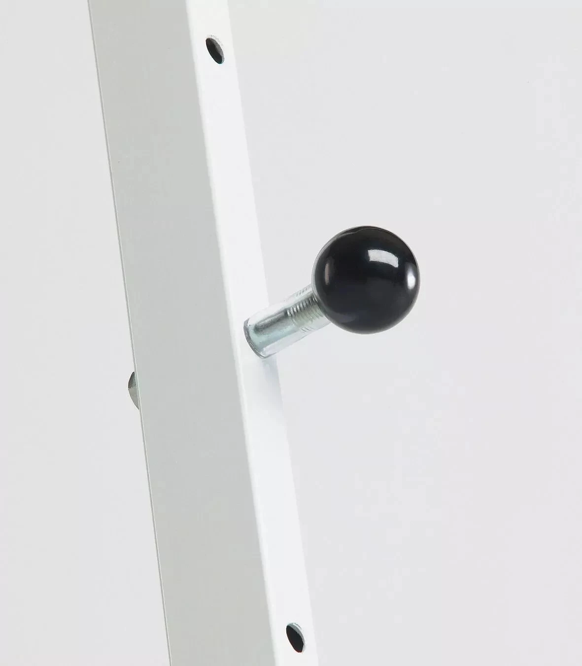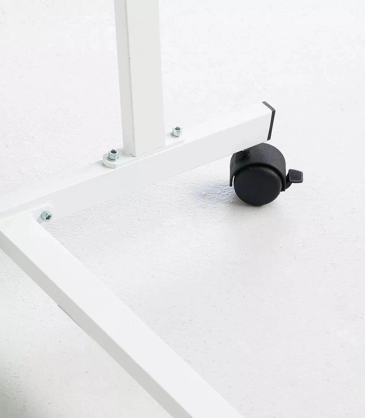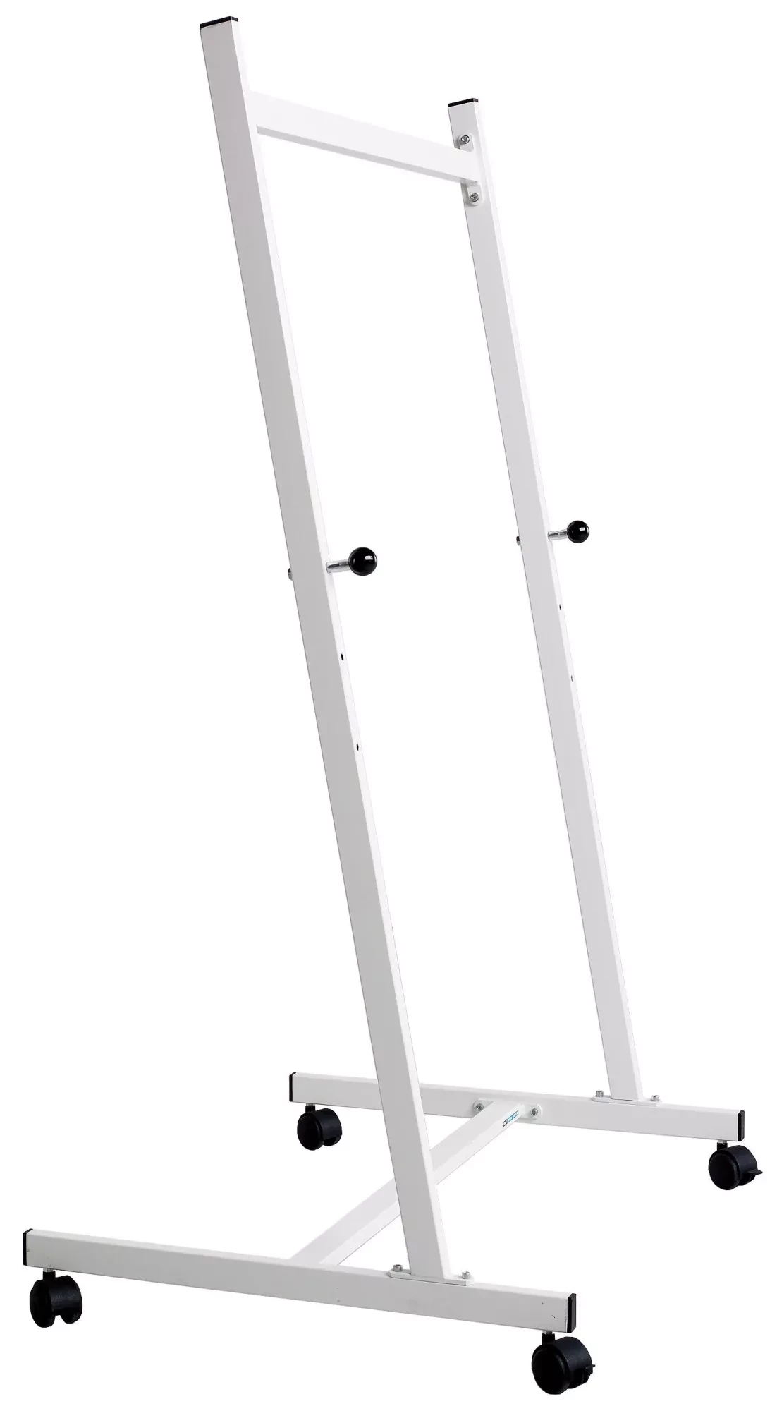 Wit plaatstaal plaatstaal op 4 wielen (waarvan 2 met rem). Borden kunnen op drie hoogtes geplaatst worden. Maximale plankafmetingen op een standaard 90 cm: 100x150 cm (hxb) en op een standaard 140 cm: 100x180 cm (hxb).