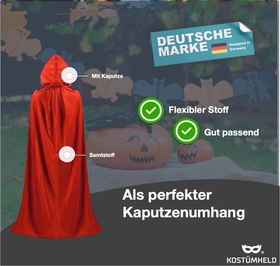 Halloween vampire costume cape - red & black - hooded cape for children & adults - women & men (8785300201815)