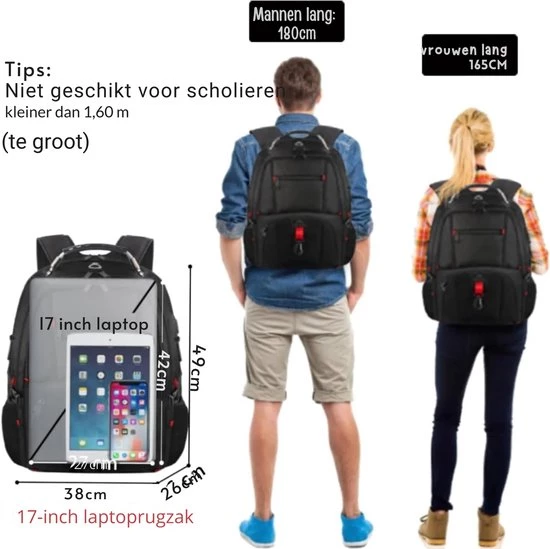 Large Laptop Backpack 17 Inch - Waterproof - Anti-Theft - Black (8721085172100)