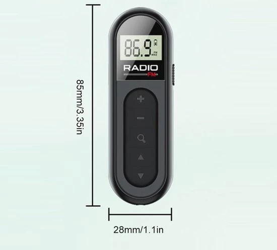 Discover the ultimate portable FM radio receiver with a frequency range of 76-108 MHz, perfect for sports enthusiasts and tourists. This rechargeable stereo radio features a bright backlight, an easy-to-use LCD screen, and a 35mm headphone jack. With its compact dimensions of 85*28*19mm and lightweight design of only 31g, this mini pocket FM radio is easy to take with you to any meeting or activity. The 300mAh lithium battery ensures long-lasting listening pleasure, while the maximum output power of 65MW delivers excellent sound quality. Simply store the radio in your bag and enjoy your favorite stations wherever you go! The Mini Pocket FM radio comes with a charging cable and a manual. Perfect for on the go!