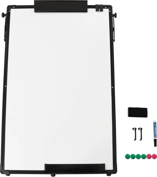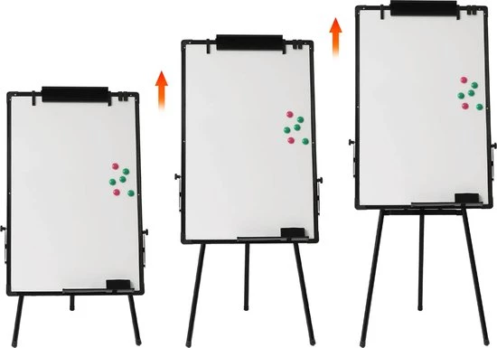 Meet the versatile and convenient ShopEighty8 Flipover Whiteboard! This magnetic whiteboard with adjustable stand offers the perfect solution for all your presentations, lessons and meetings. With a sleek black design and a range of useful features, this whiteboard is a must-have for any professional environment.