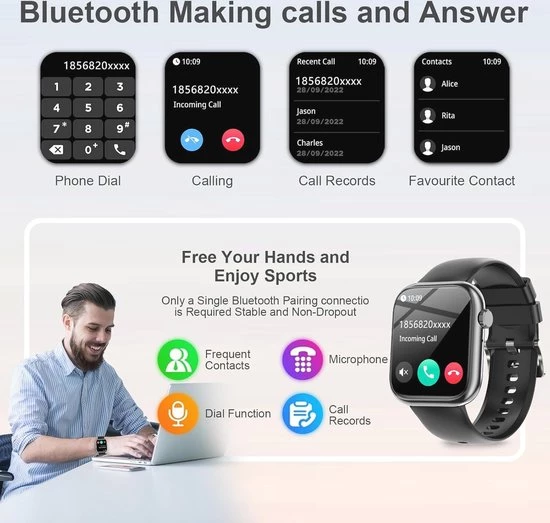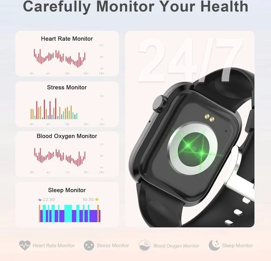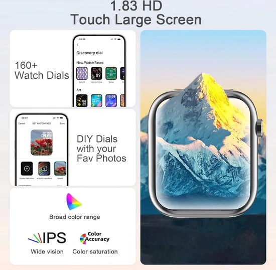 Discover the versatile smartwatch for men and women, perfect for any occasion. This advanced smartwatch features a bright 183-inch HD display and supports over 110 different sports modes. Monitor your health with the built-in sleep monitor, SpO2 sensor, and heart rate monitor. With IP68 water resistance, this smartwatch is ideal for both athletes and casual users. Compatible with both iOS and Android, it's the perfect fitness companion for everyone.