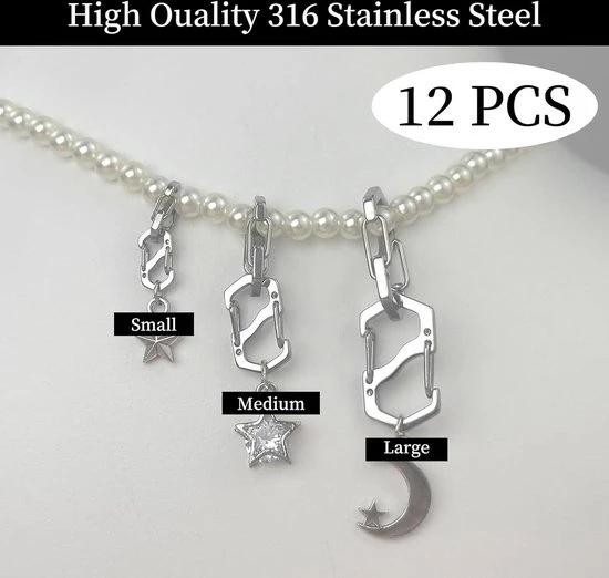 Stainless Steel Chain Clasps - 12 Pieces Bracelet Clasps - Silver Clasps for Bracelets with Mini Carabiners