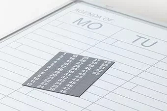 Weekly planner by horizontally pre-printed weekdays and vertically 5 rows of weeks. By numbering the positions from 1 to 31, this board is suitable as a monthly planner. Equipped with aluminum anodized softline profile including suspension material and marker tray 30 cm.