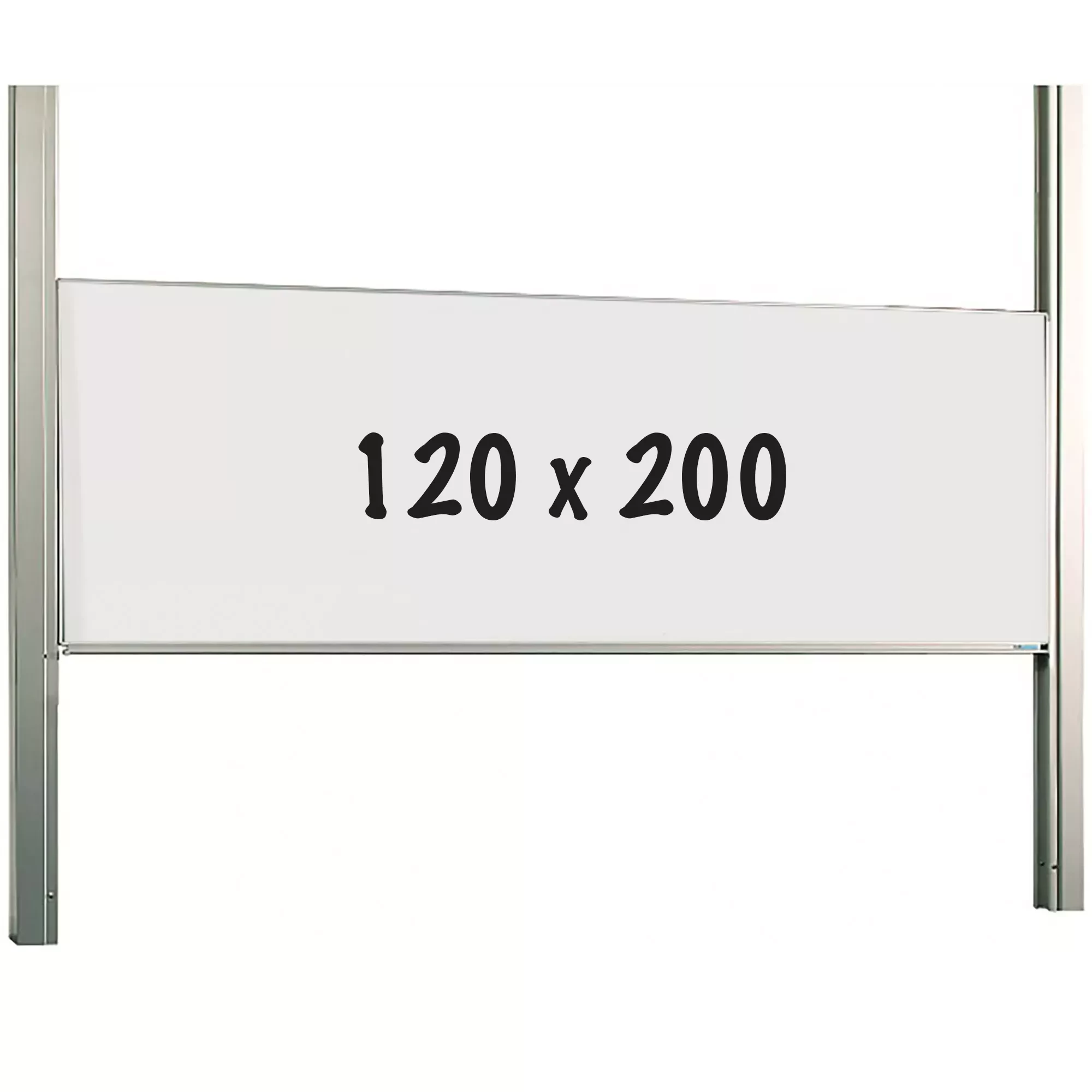 Board with 1 writing surface in enamel steel white (800C) or green. Anodized 19 mm aluminum profile with plastic corner pieces and chalk collection gutter. Mounting between two columns, standard height: 265 cm. Longer columns: optional.
