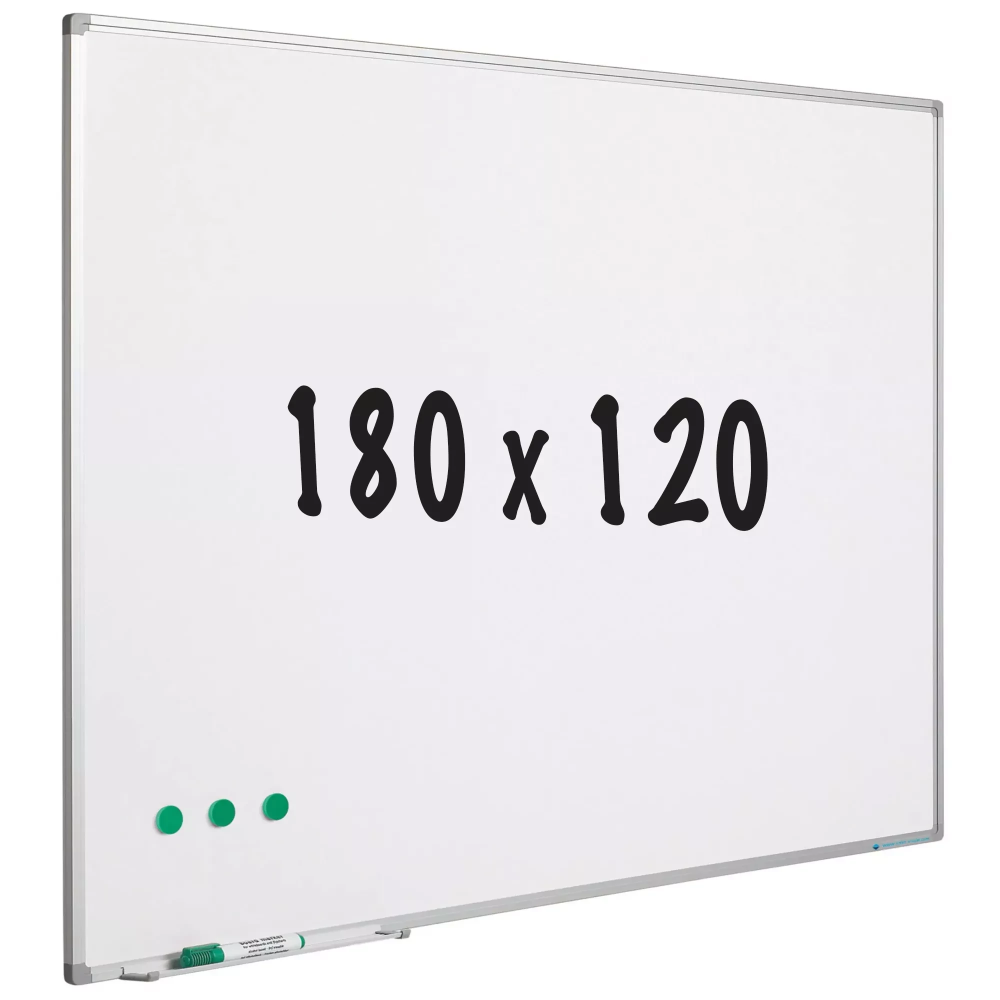 High quality white enamelled steel whiteboard (800C). Whiteboard for very intensive and durable use. Anodized aluminum Softline profile with plastic gray corners.Including marker tray of 30 cm.