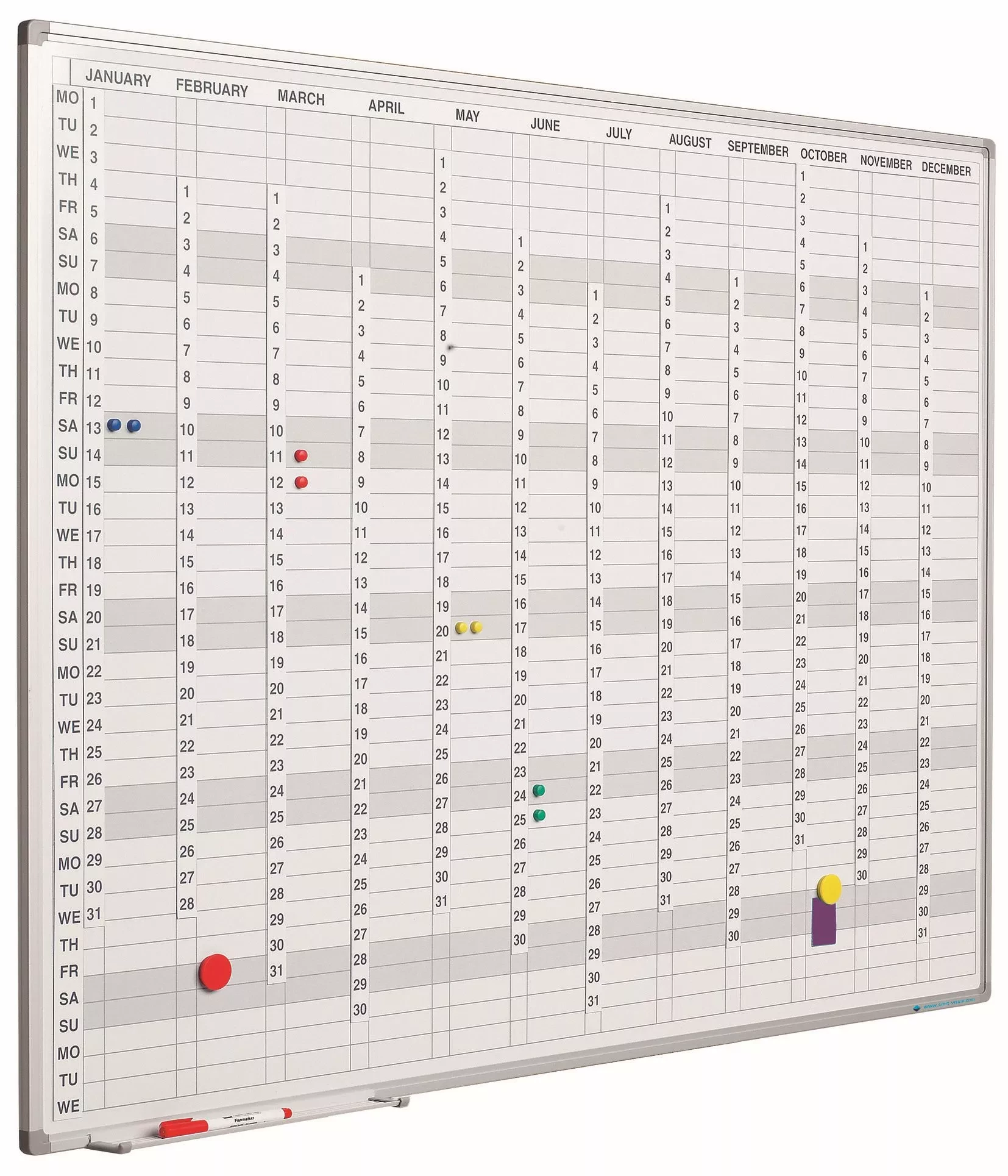 Whiteboard PRO Mcbride - Enamel steel - Weekly planner - Monthly planner - Yearly planner - Magnetic - White - incl. month/day/number strips - English - 60x90cm (70546)