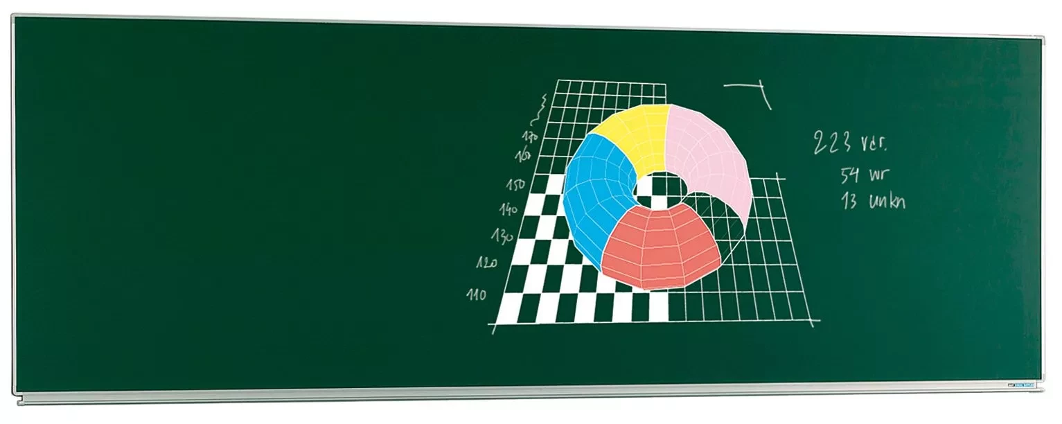 Plate with 1 writing surface in enamel steel green. Anodized 19 mm aluminum profile with plastic corner pieces, including storage/chalk collecting tray over the entire width of the board. Mounting on a fixed wall. Magnetic and dry erase.