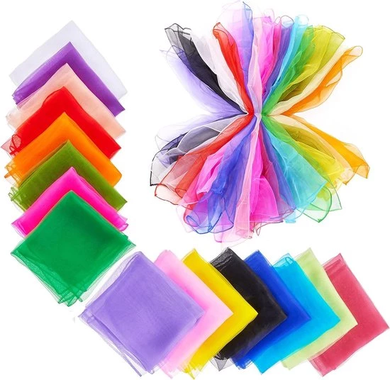 These sensory cloths are made from high-quality silk and measure a generous 60x60cm, making them perfect for little hands. The vibrant colours stimulate the visual and tactile senses, while also supporting sensory development. Not only suitable for babies, but also for children who enjoy dancing, gymnastics or juggling.