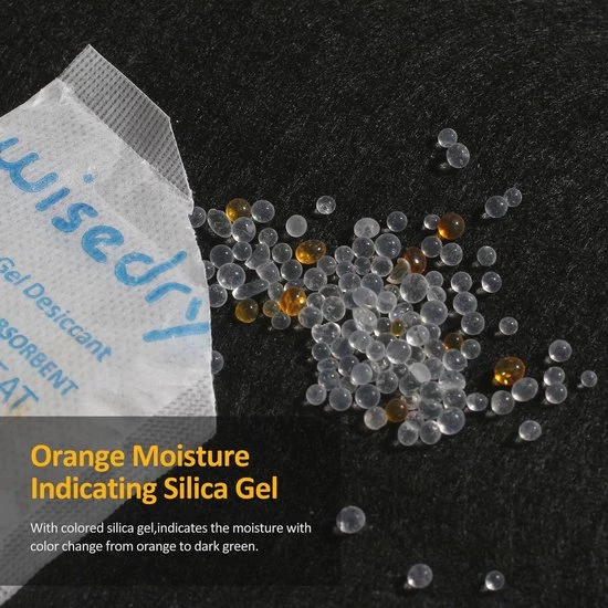 [Desiccant with Indicator] – This silica gel contains orange granules that help users quickly see when the desiccant needs to be replaced. The orange crystals turn black-green when full of moisture. [Regenerable Silica Gel Packets] – Reusable by heating in the microwave or oven. Microwave: Low temperature for a few minutes. Oven: Temperature < 110°C. Only charge when the packets are not fully saturated to prevent melting or fire. [Safe Double Packaging & Easy Storage] – 10g x 30 count vacuum-packed and in a sealed aluminum zip-lock bag keeping the packets protected before use. [Food-Grade Silica Gel] – Up to 35% moisture absorption capacity. Cobalt chloride free and non-toxic, food and drug safe. Use this orange silica gel instead of blue. [Satisfaction Guaranteed] – If you are not satisfied, contact us for a quick resolution.