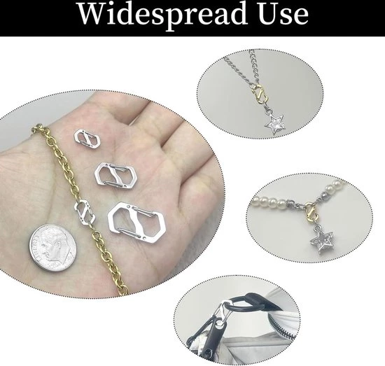 Stainless Steel Chain Clasps - 12 Pieces Bracelet Clasps - Silver Clasps for Bracelets with Mini Carabiners