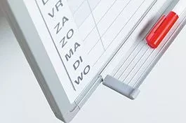 Timeless year planner. The months, days and dates can be indicated every year by means of magnetic strips. Equipped with aluminum anodized softline profile. Including hanging material, marker tray 30 cm, vertical number strips, horizontal month strip and vertical day strip.