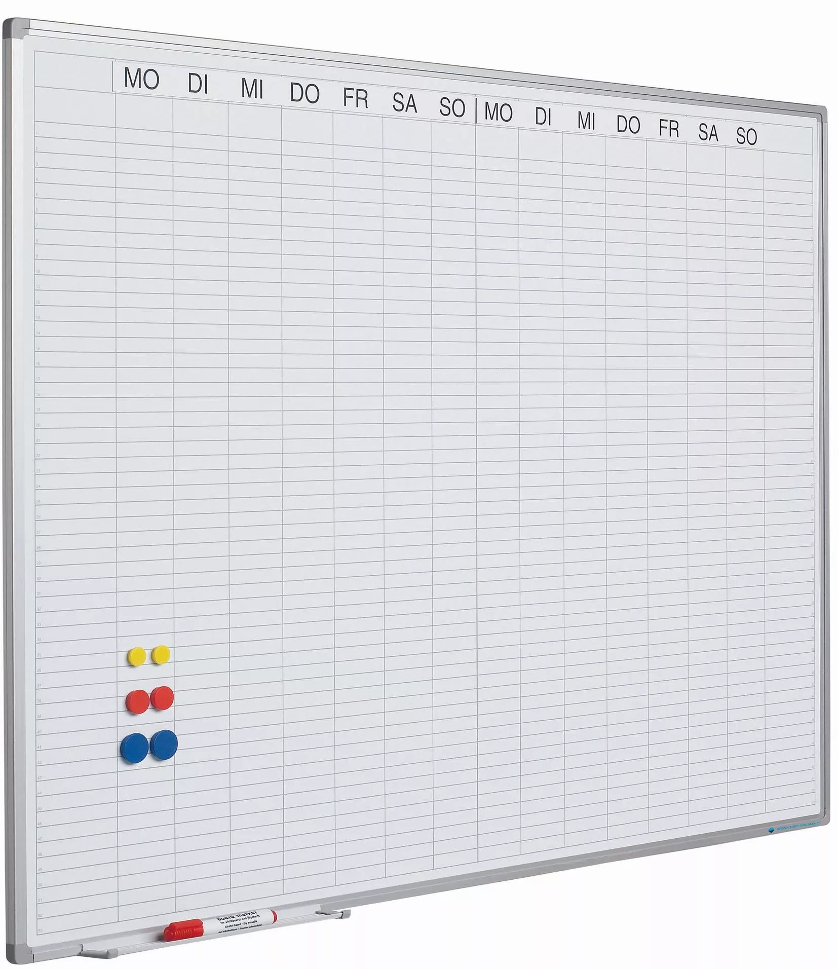 Whiteboard PRO Randolph - Enamel steel - Weekly planner - Monthly planner - Yearly planner - Magnetic - White - German - 90x120cm (70558)